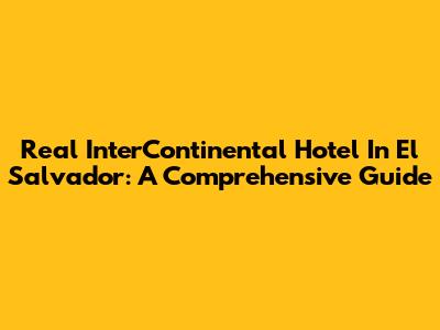 Real InterContinental Hotel In El Salvador: A Comprehensive Guide
