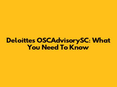 Deloitte's OSCAdvisorySC: What You Need To Know