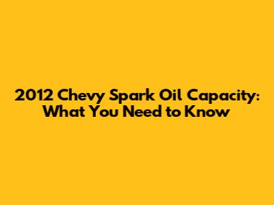 Hey there, fellow car enthusiasts! If you're a proud owner of a 2012 Chevy Spark, you've probably wondered about something pretty crucial: the oil capacity. Knowing the correct oil capacity for your car is super important for keeping its engine running smoothly and avoiding any potential damage. So, let's dive right into everything you need to know about the 2012 Chevy Spark oil capacity.