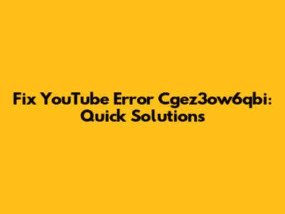 Fix YouTube Error Cgez3ow6qbi: Quick Solutions