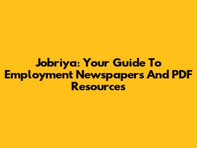 Jobriya: Your Guide To Employment Newspapers And PDF Resources