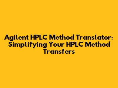 Hey guys! Ever felt like deciphering an Agilent HPLC method is like learning a whole new language? You're not alone. Transferring methods between different HPLC systems, especially when dealing with Agilent instruments, can be a real headache. But what if there was a way to make this process smoother, faster, and less prone to errors? That's where the Agilent HPLC Method Translator comes in – a fantastic tool designed to bridge the gap and make your method transfers a breeze. In this article, we'll dive deep into what the method translator is, how it works, and why it's a game-changer for anyone working with Agilent HPLC systems.