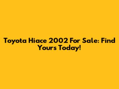 Toyota Hiace 2002 For Sale: Find Yours Today!