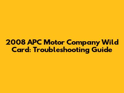 2008 APC Motor Company Wild Card: Troubleshooting Guide