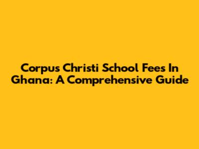 Corpus Christi School Fees In Ghana: A Comprehensive Guide