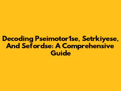 Decoding Pseimotor1se, Setrkiyese, And Sefordse: A Comprehensive Guide