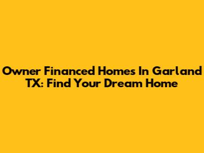 Owner Financed Homes In Garland TX: Find Your Dream Home