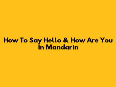 How To Say 'Hello' & 'How Are You' In Mandarin