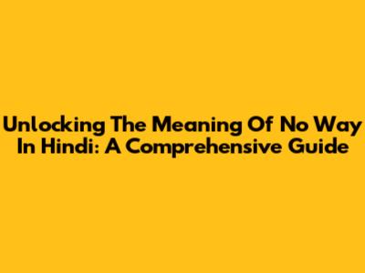 Unlocking The Meaning Of 'No Way' In Hindi: A Comprehensive Guide