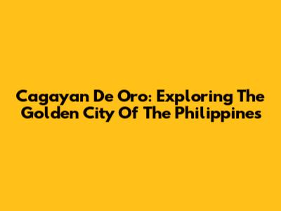 Cagayan De Oro: Exploring The Golden City Of The Philippines