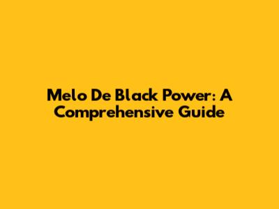 Melo De Black Power: A Comprehensive Guide