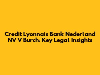 Credit Lyonnais Bank Nederland NV V Burch: Key Legal Insights