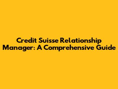 Credit Suisse Relationship Manager: A Comprehensive Guide