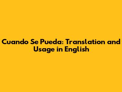 Have you ever stumbled upon the Spanish phrase "cuando se pueda" and wondered how to express it accurately in English? Well, you're not alone! It's a common expression with nuances that can be tricky to capture directly. Let's dive into the world of translations and explore the best ways to convey the meaning of "cuando se pueda" in various contexts.