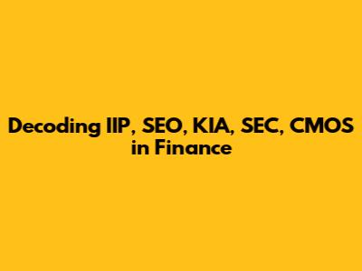 Hey guys! Ever feel like you're drowning in alphabet soup when trying to understand finance? You're not alone! Finance is full of acronyms and initialisms that can make even seasoned pros scratch their heads. Today, we're going to break down some of the trickier ones: IIP, SEO, KIA, SEC, and CMOS. Let's dive in and make these financial terms a little less intimidating and a lot more understandable. We'll explore each term individually, providing clear definitions, real-world examples, and insights into why they matter in the grand scheme of finance. By the end of this article, you'll be able to confidently throw these acronyms around and impress your friends with your newfound financial knowledge!