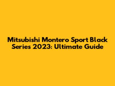 Mitsubishi Montero Sport Black Series 2023: Ultimate Guide