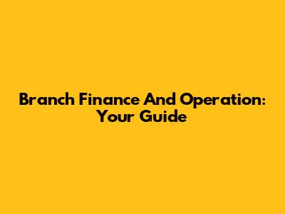 Branch Finance And Operation: Your Guide