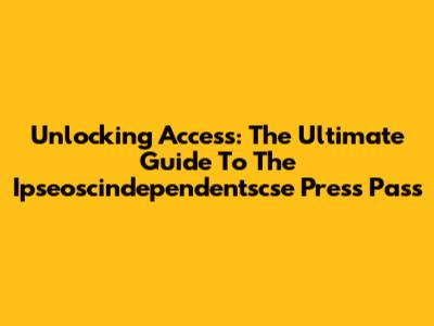 Unlocking Access: The Ultimate Guide To The Ipseoscindependentscse Press Pass