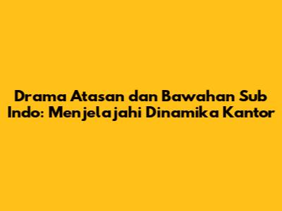 Drama atasan dan bawahan sub indo telah menjadi genre yang sangat populer di kalangan penggemar drama. Kisah-kisah ini sering kali berpusat pada dinamika kompleks di tempat kerja, yang menampilkan hubungan antara atasan dan bawahan. Genre ini menawarkan berbagai tema yang menarik, mulai dari romansa kantor yang menggoda hingga intrik politik yang menegangkan. Artikel ini akan membahas secara mendalam tentang drama atasan dan bawahan sub indo, termasuk popularitasnya, elemen-elemen kunci, beberapa contoh terbaik, dan tempat di mana Anda dapat menontonnya.
