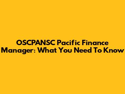 OSCPANSC Pacific Finance Manager: What You Need To Know