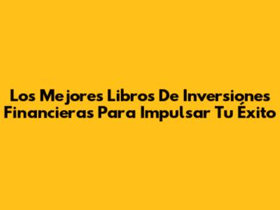 Los Mejores Libros De Inversiones Financieras Para Impulsar Tu Éxito