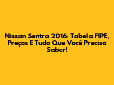 Nissan Sentra 2016: Tabela FIPE, Preços E Tudo Que Você Precisa Saber!