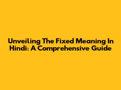 Unveiling The Fixed Meaning In Hindi: A Comprehensive Guide