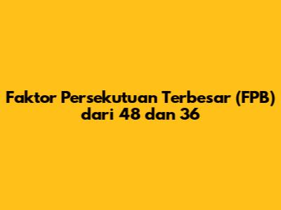 Nah, sekarang kita sampai pada inti dari pembahasan kita, yaitu menentukan faktor persekutuan terbesar (FPB). Setelah kita menemukan faktor persekutuan dari 48 dan 36, yaitu 1, 2, 3, 4, 6, dan 12, kita tinggal mencari angka terbesar di antara faktor-faktor tersebut. Dalam hal ini, angka terbesar adalah 12. Jadi, FPB dari 48 dan 36 adalah 12. Ini berarti bahwa 12 adalah angka terbesar yang dapat membagi baik 48 maupun 36 tanpa sisa. Menentukan FPB sangat berguna dalam berbagai situasi, misalnya saat kita ingin menyederhanakan pecahan. Dengan membagi pembilang dan penyebut pecahan dengan FPB-nya, kita bisa mendapatkan pecahan yang paling sederhana. Selain itu, FPB juga sering digunakan dalam masalah-masalah matematika yang melibatkan pembagian dan kelompok. Jadi, memahami cara mencari FPB adalah keterampilan yang sangat berharga. Dengan latihan yang cukup, teman-teman akan semakin mahir dalam menentukan FPB dari berbagai pasangan bilangan.