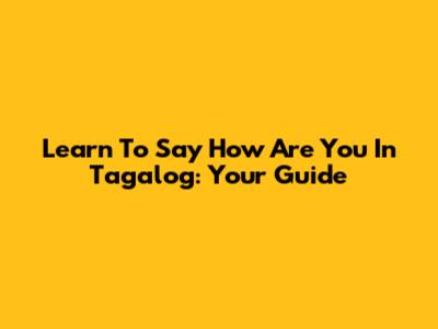 Learn To Say 'How Are You' In Tagalog: Your Guide