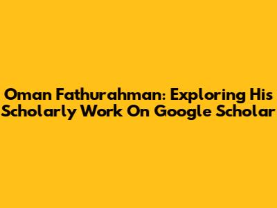 Oman Fathurahman: Exploring His Scholarly Work On Google Scholar