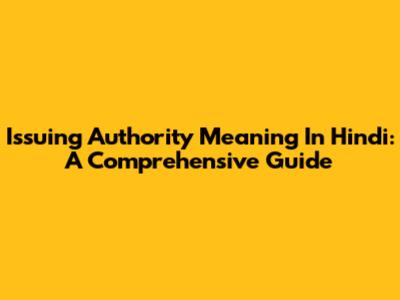 Issuing Authority Meaning In Hindi: A Comprehensive Guide