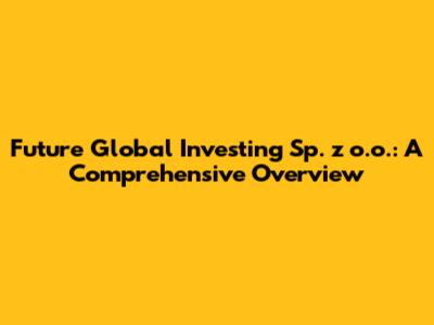 Let's dive into Future Global Investing Sp. z o.o.! In this article, we're going to take a comprehensive look at what this company is all about. Whether you're an investor, a curious reader, or someone just trying to get a better understanding of the global investment landscape, this guide is for you. We'll explore the ins and outs of Future Global Investing, its mission, its operations, and its impact on the broader financial world. So, buckle up and let's get started!