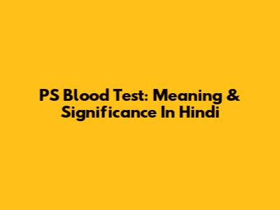 PS Blood Test: Meaning & Significance In Hindi
