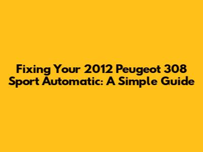 Fixing Your 2012 Peugeot 308 Sport Automatic: A Simple Guide