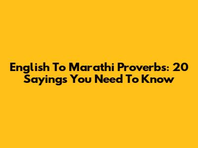 English To Marathi Proverbs: 20 Sayings You Need To Know