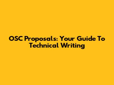 OSC Proposals: Your Guide To Technical Writing