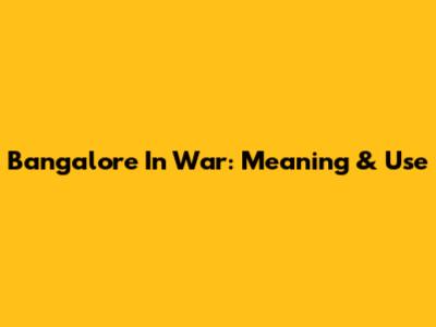 Bangalore In War: Meaning & Use
