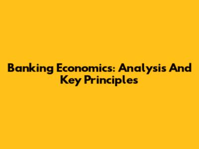 Banking Economics: Analysis And Key Principles