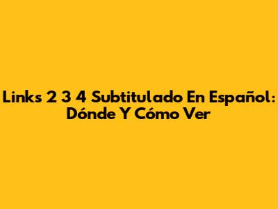 Links 2 3 4 Subtitulado En Español: Dónde Y Cómo Ver