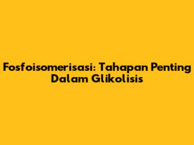 Fosfoisomerisasi: Tahapan Penting Dalam Glikolisis
