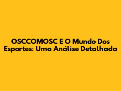 OSCCOMOSC E O Mundo Dos Esportes: Uma Análise Detalhada