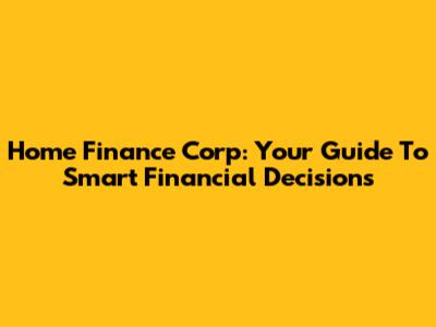 Home Finance Corp: Your Guide To Smart Financial Decisions