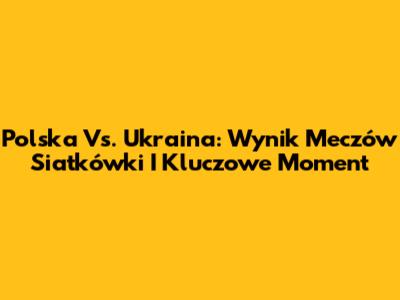Polska Vs. Ukraina: Wynik Meczów Siatkówki I Kluczowe Moment