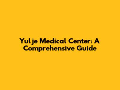 Yulje Medical Center: A Comprehensive Guide