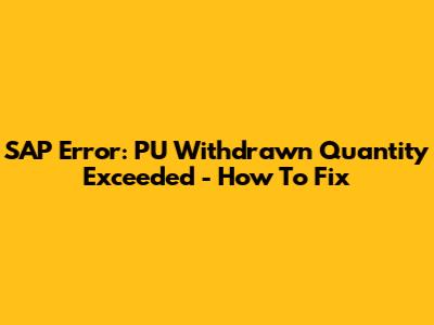 SAP Error: PU Withdrawn Quantity Exceeded - How To Fix