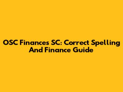 OSC Finances SC: Correct Spelling And Finance Guide
