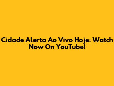 Cidade Alerta Ao Vivo Hoje: Watch Now On YouTube!