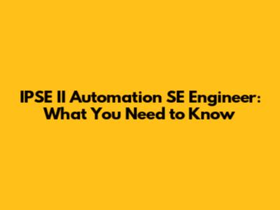 Skills Required to Become an IPSE II Automation SE Engineer