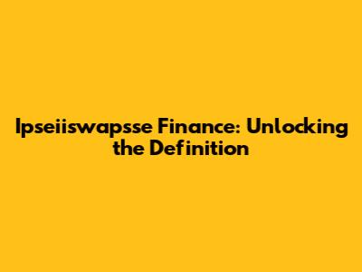 Alright, guys, let's dive into the world of ipseiiswapsse finance! It sounds like a mouthful, I know, but we're going to break it down and make it super easy to understand. So, what exactly is ipseiiswapsse finance? Well, the term itself isn't a standard, widely recognized financial term. It's highly probable that there's a typo or a specific, niche context where this term might be used. Given that, let's approach this by dissecting potential components and related concepts to provide a comprehensive understanding.