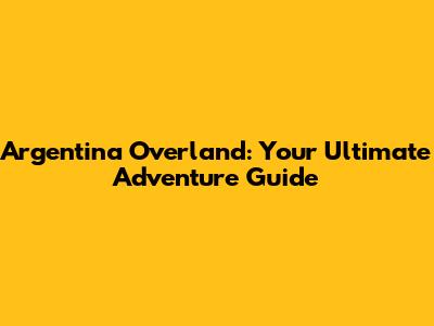 Argentina Overland: Your Ultimate Adventure Guide